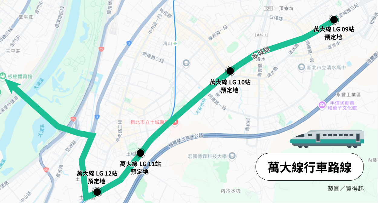 萬大線從中正紀念堂站出發,行經萬華、中和、永和終點站將延伸至土城,並在金城路上設置LG9廷寮站、LG10清水站、LG11土城站、LG12埤塘站,無疑替整個土城帶來了革命性的交通便利,透過萬大線,可更快速地進入台北市中心,更提升土城的交通地位,不再只是板南線的末段班印象,新路線更可吸引到來自萬華、中和、永和等民眾前來置產,使土城與新區域連結更加緊密。