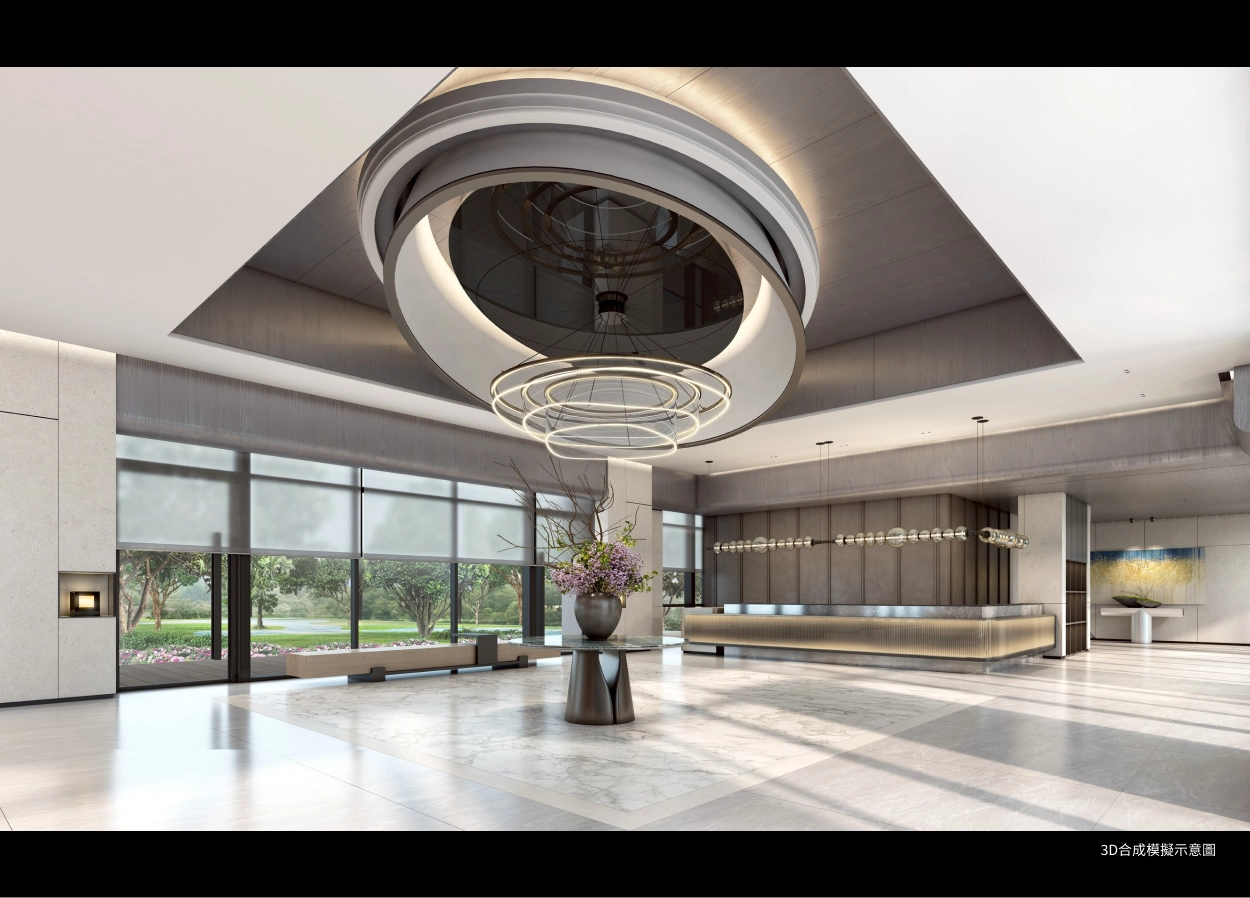 浩瀚光与玥18層樓的建築雙塔,利用「錯層複層式挑空露台」創造出豐富的光影層次,讓建築立面顯得更為生動,搭配垂直的線條燈飾點綴,在夜晚時分也不單調乏味。基地鄰路退縮種植雙排綠樹,規劃行人友善的專屬綠廊,步入室內30米面寬的氣派大廳,陽光穿透灑落四面的大片落地窗,空間通透而明亮,在健身房或閱讀室都沒有絲毫壓迫感。