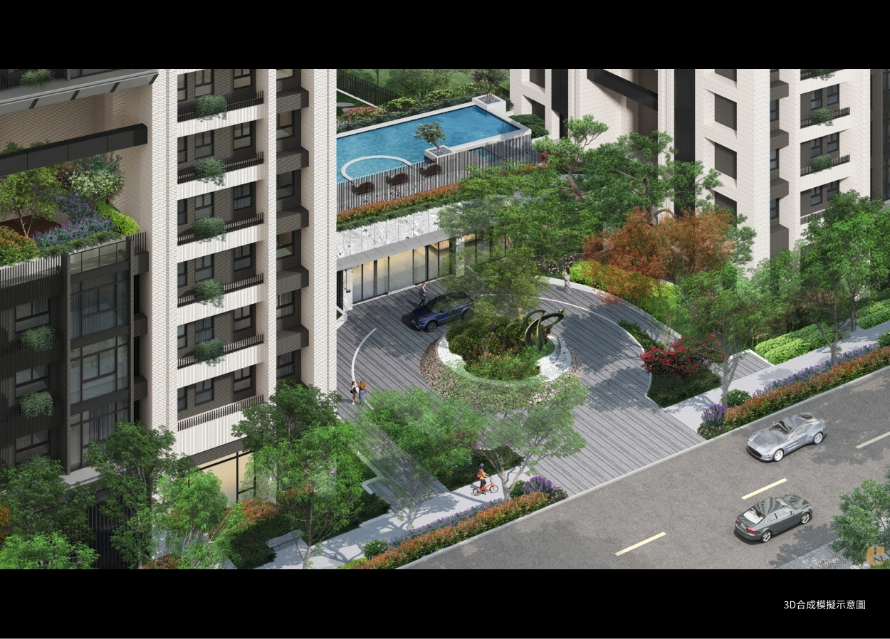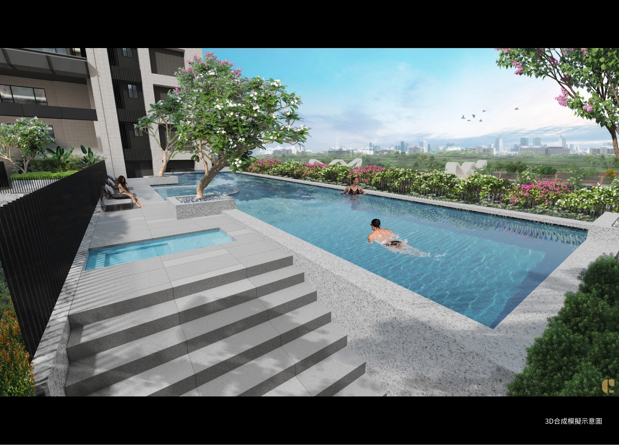 迎賓迴廊車道,打造住戶返家尊榮感;25米露天飯店泳池,滿足城市的度假想像