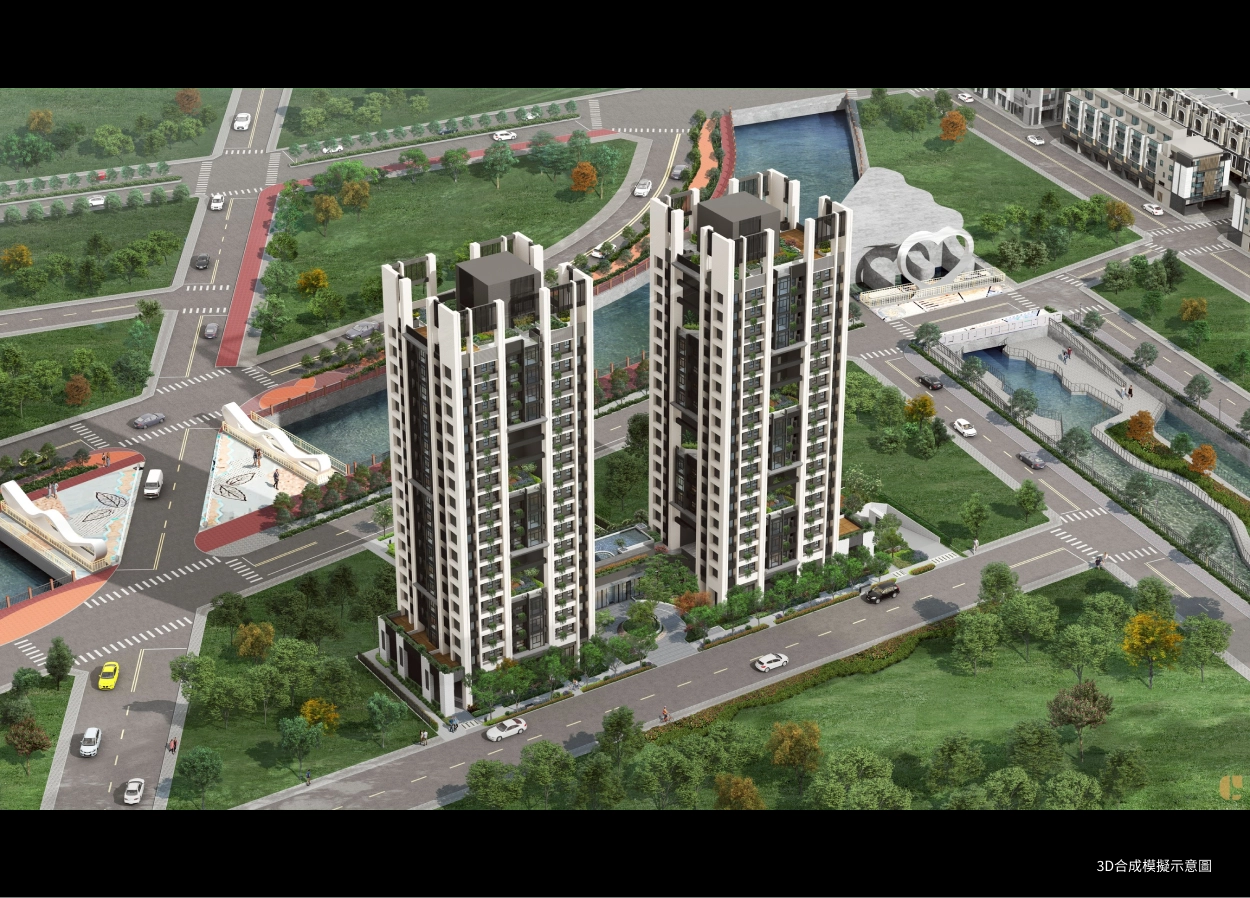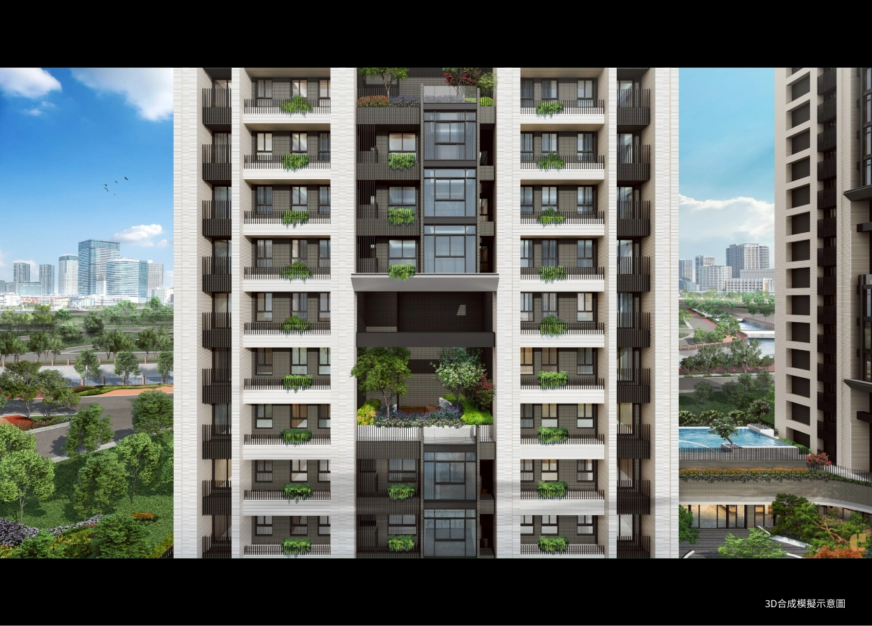 • 18層雙塔建築,複層式挑空露台設計,增添建築層次和外觀豐富度。