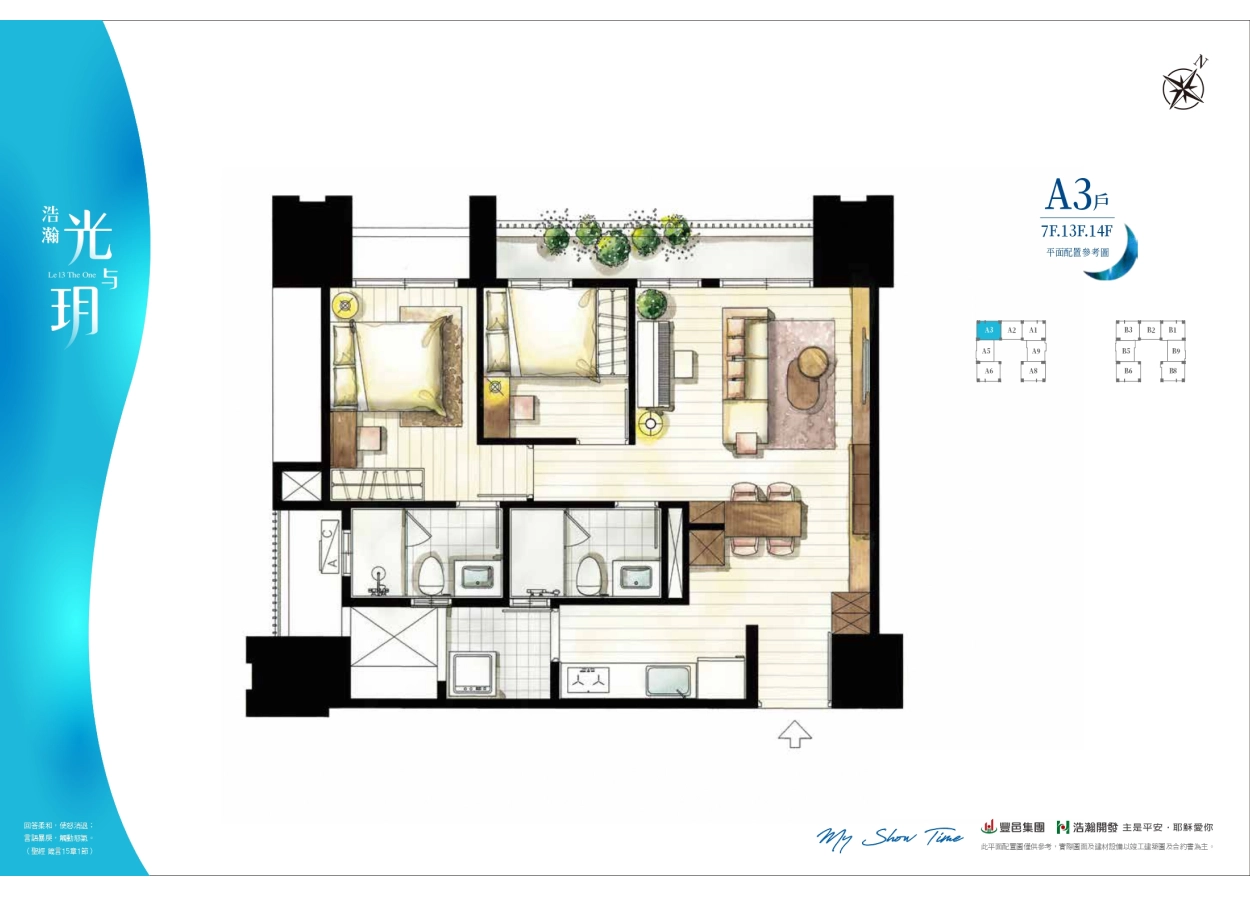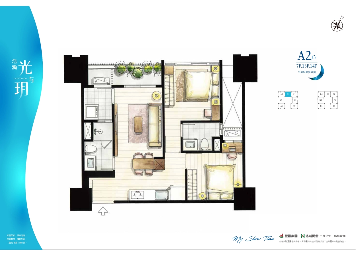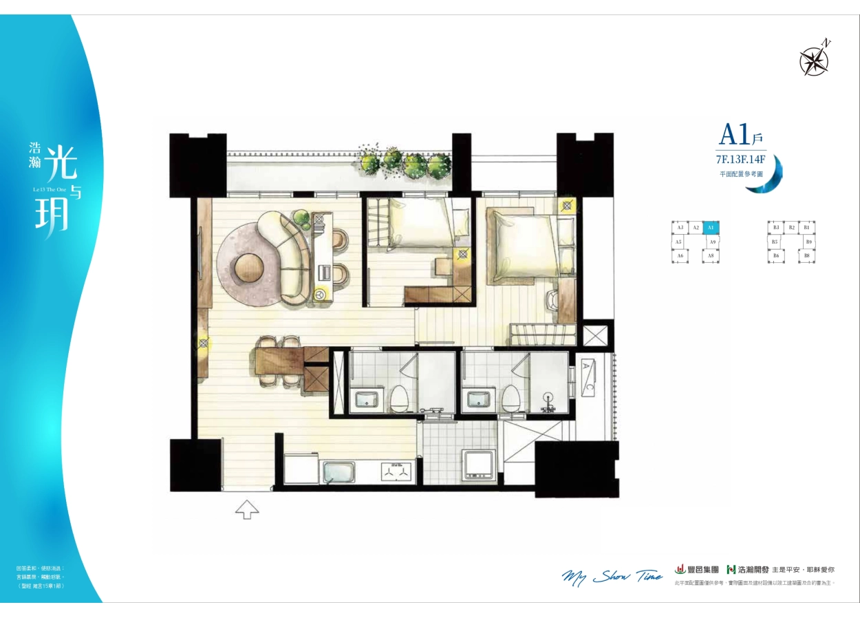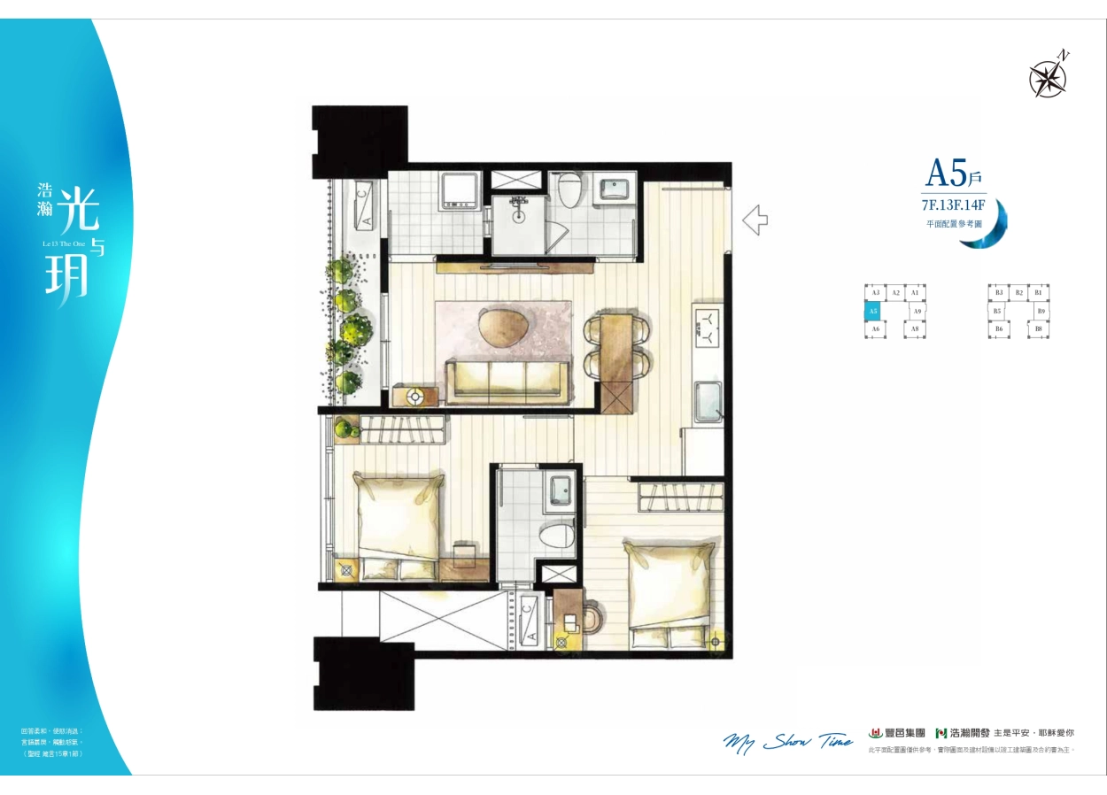 浩瀚光与玥主打均質兩房產品,有小孩的家庭可參考邊間2+1房戶別,空間大小會較合適,格局設計公私領域分明、雙面採光,客廳面寬近4米,是普遍三房以上尺度才會有的大面寬,後方可打造辦公空間,想培養才藝放架鋼琴也綽綽有餘,最加分的是兩間衛浴都開窗、冷氣室外機獨立擺放不佔用陽台空間,較爲可惜的是次臥空間略小,不過此案可客變根據自身需求調整。