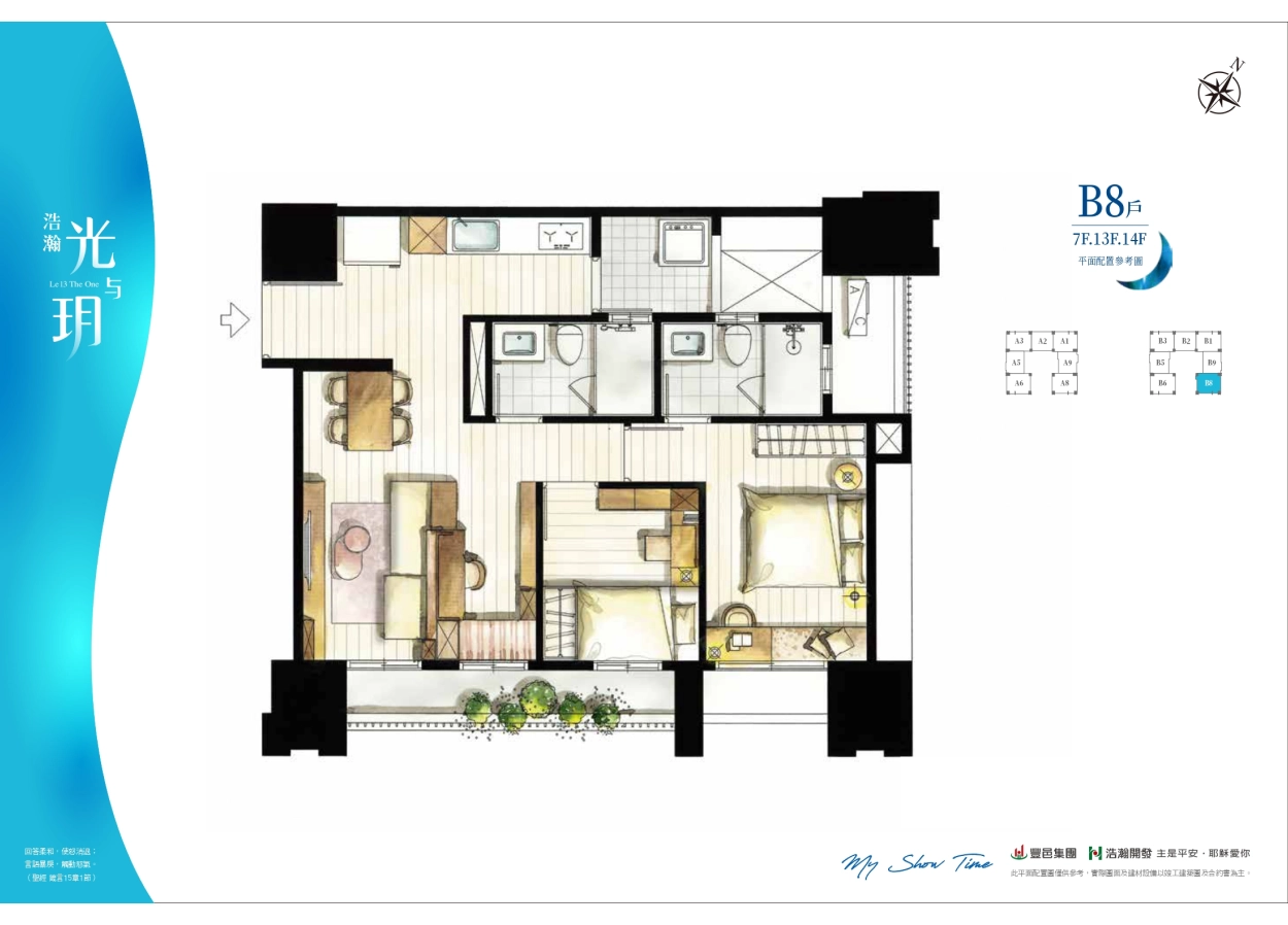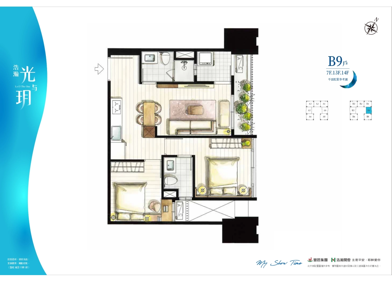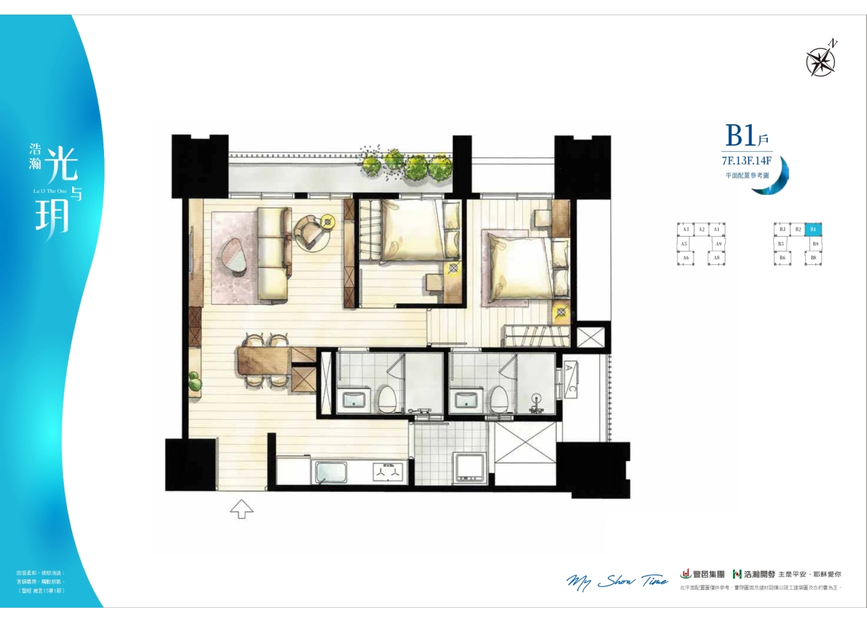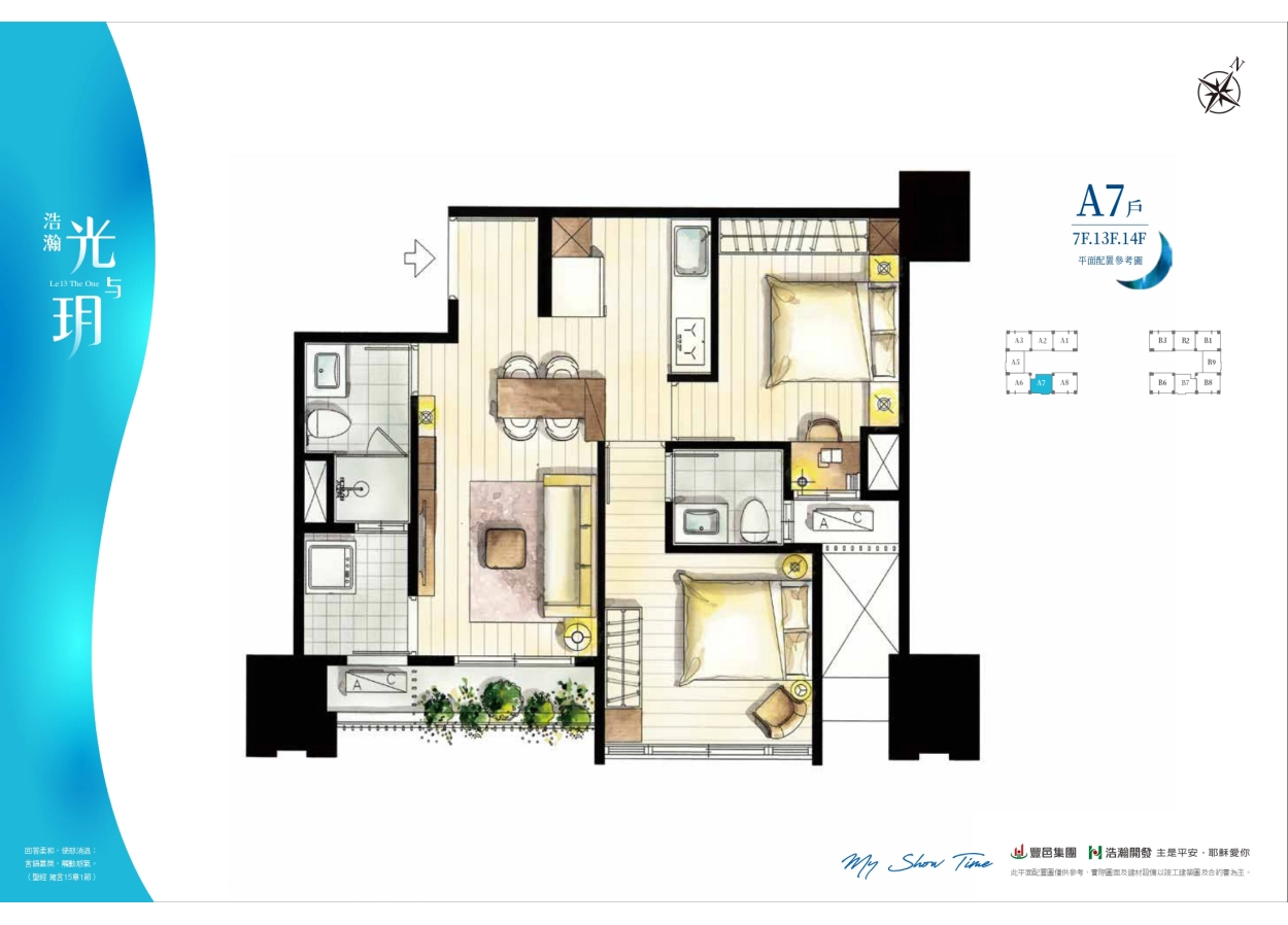 浩瀚光与玥主打均質兩房產品,有小孩的家庭可參考邊間2+1房戶別,空間大小會較合適,格局設計公私領域分明、雙面採光,客廳面寬近4米,是普遍三房以上尺度才會有的大面寬,後方可打造辦公空間,想培養才藝放架鋼琴也綽綽有餘,最加分的是兩間衛浴都開窗、冷氣室外機獨立擺放不佔用陽台空間,較爲可惜的是次臥空間略小,不過此案可客變根據自身需求調整。