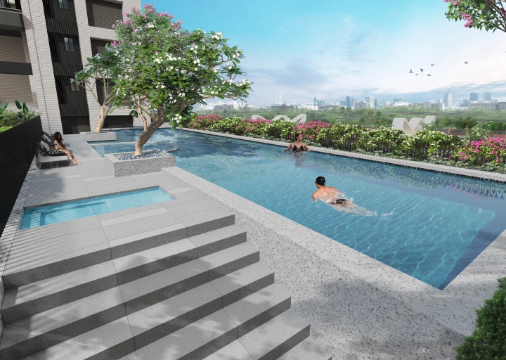 相連AB兩棟的「25米露天飯店泳池」絕對是我的one pick,我已經能想像,在炎熱的夏日週末,約上三五好友,在家樓下就能享受池畔派對的快樂,滿足城市裡的度假想像,朋友來玩有面子,結束後到文心南路,還有各式各樣的餐廳可以大啖美食。
