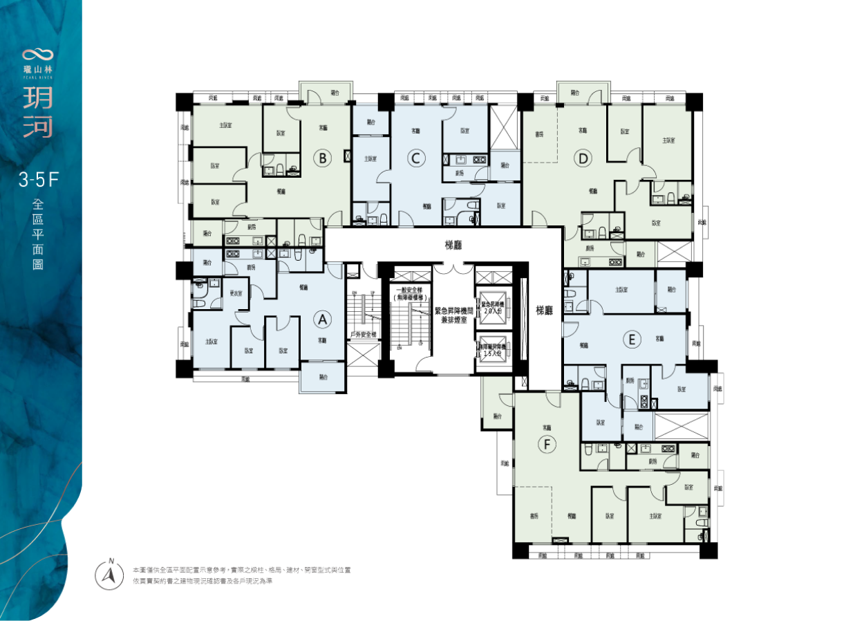 標準層,一層6-8戶,2部電梯