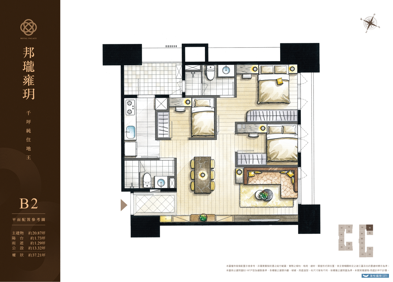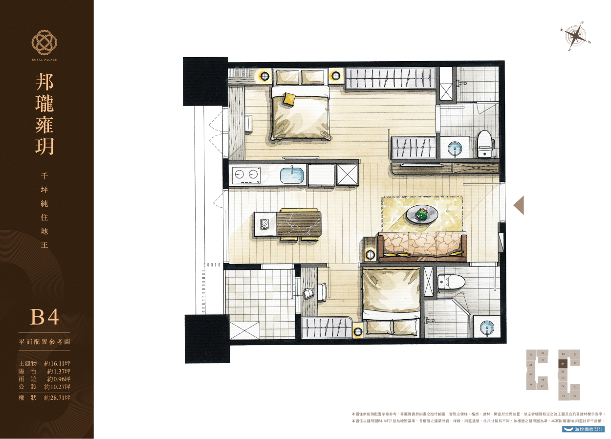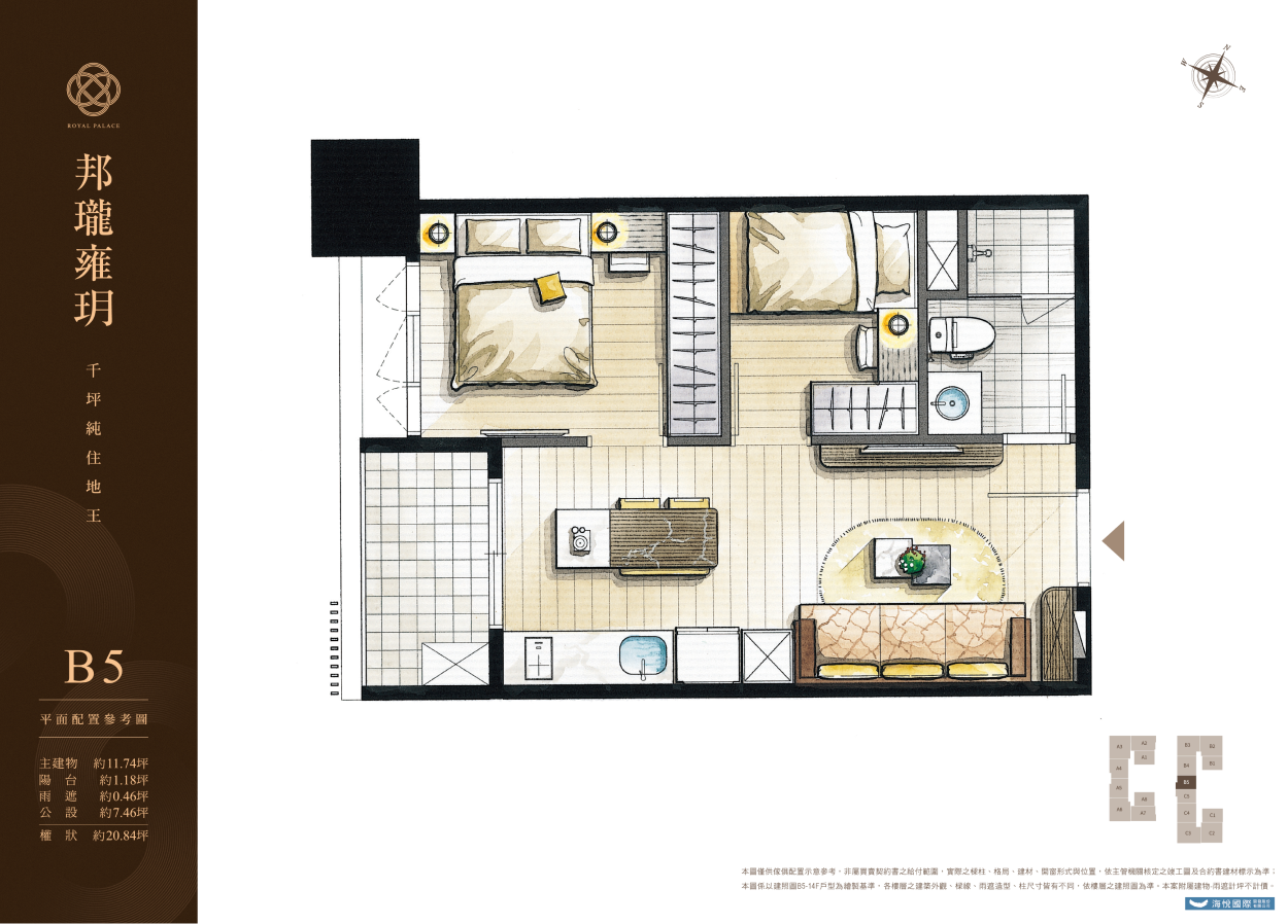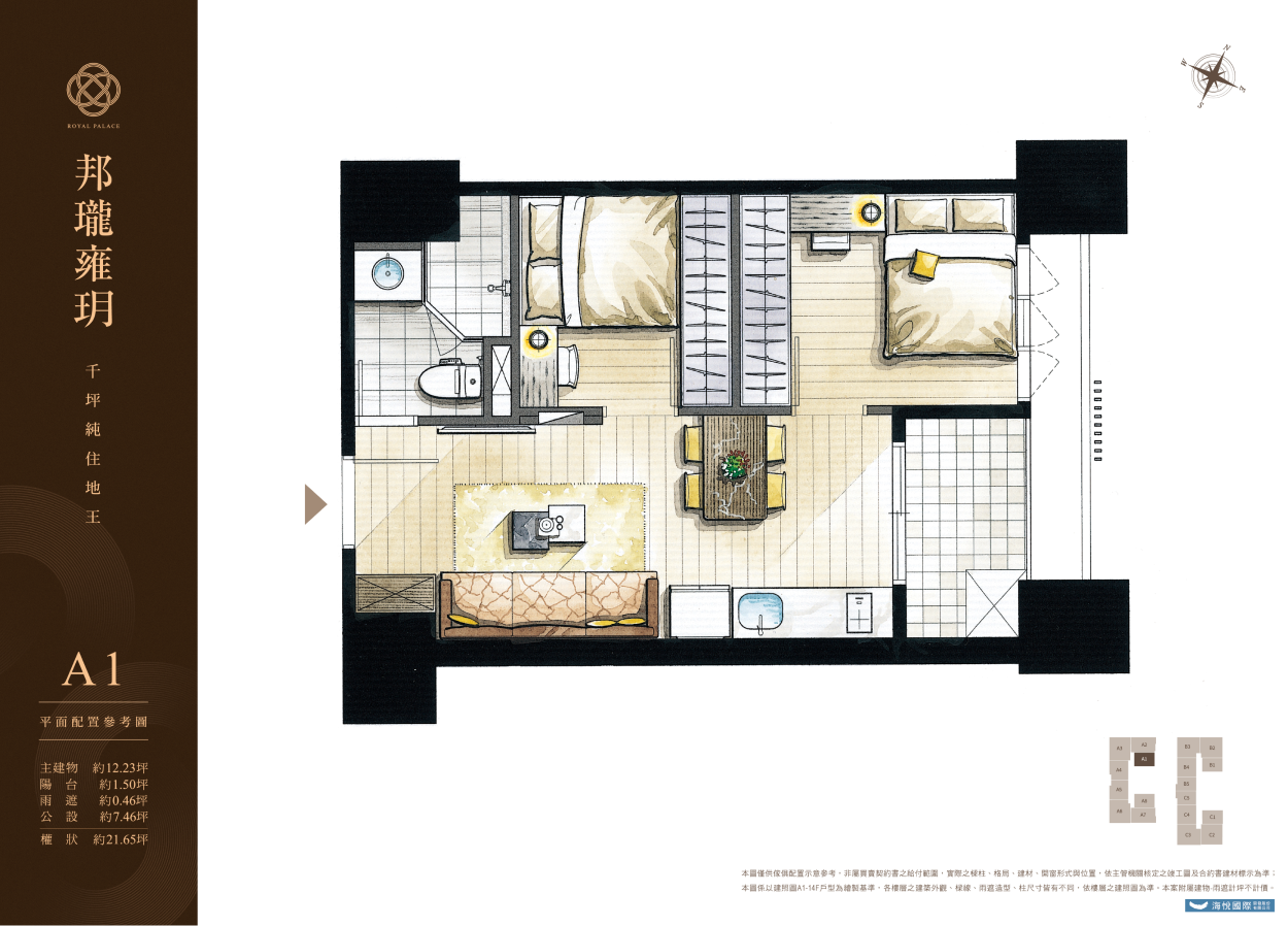 兩房 | 合計約 448 萬起 | 約 0 萬起 | 約 0 萬起 | 貸75% 約 1343 萬起,月付5萬起 | 1791萬起 | ||