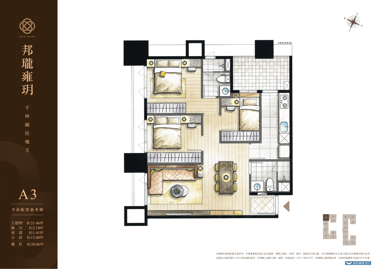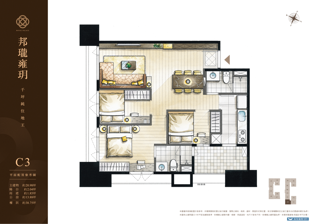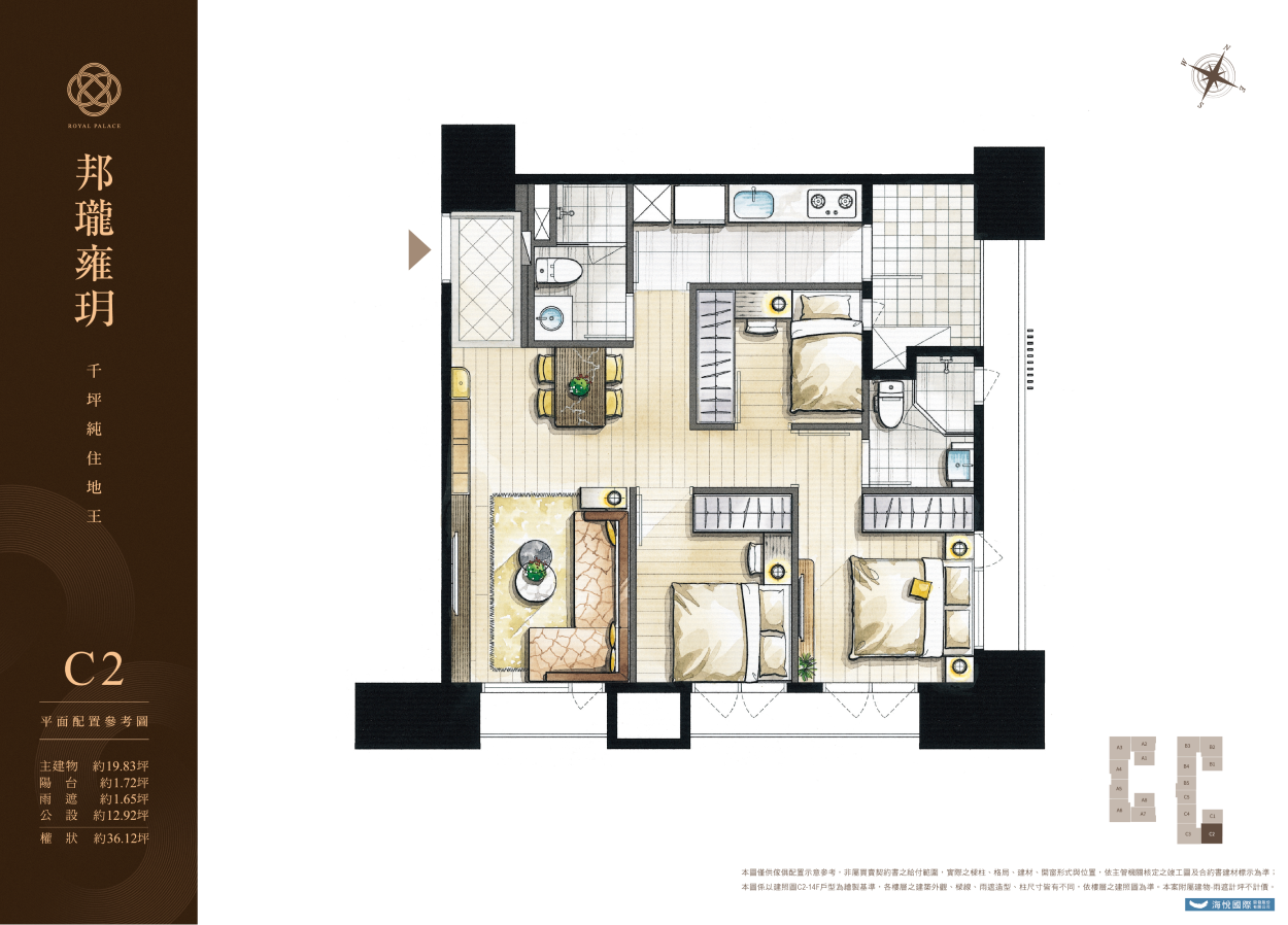 • 格局方正多元無暗廳,三房邊間雙面採光、兩房小坪數低總價享豐富公設。