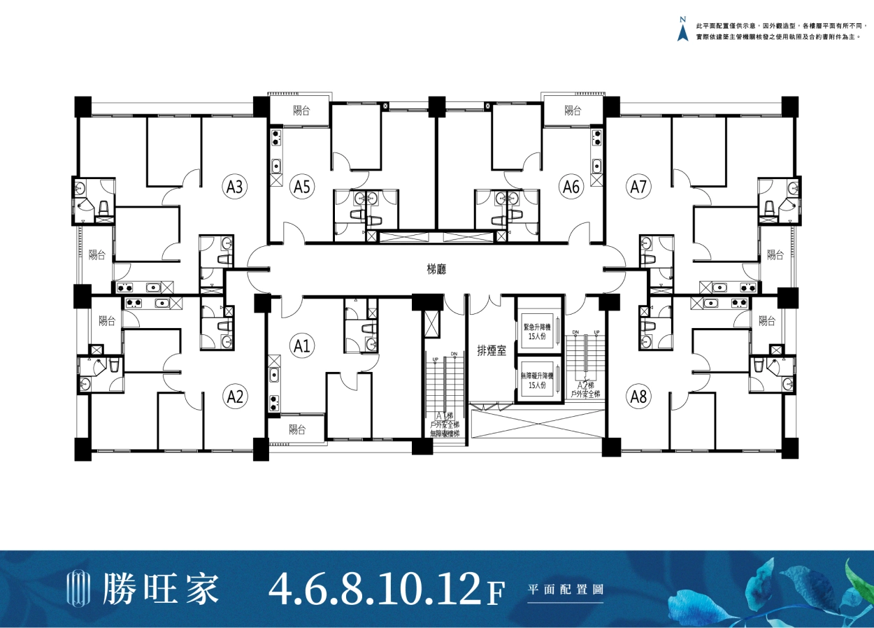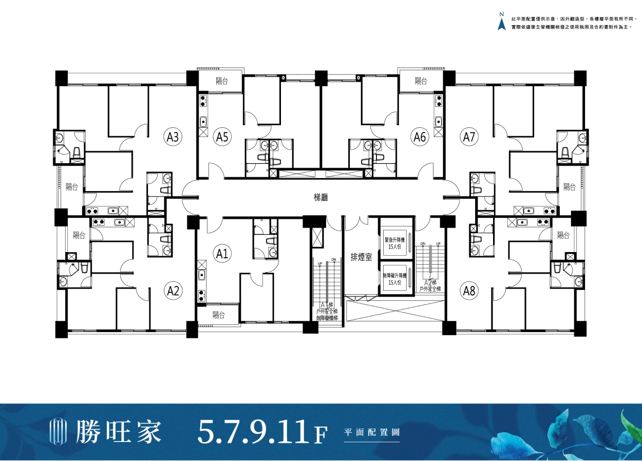 標準層,一層7戶,2部電梯