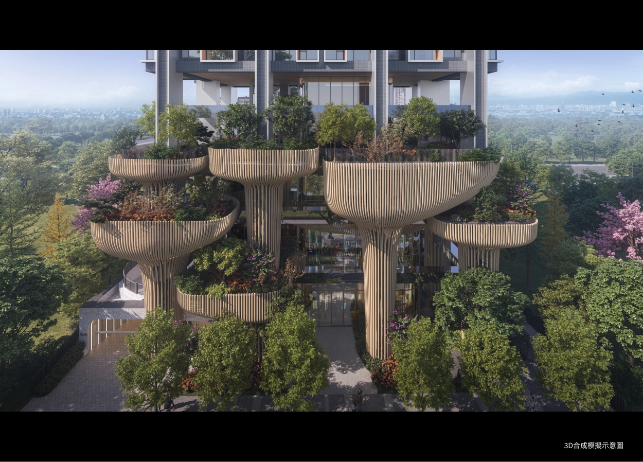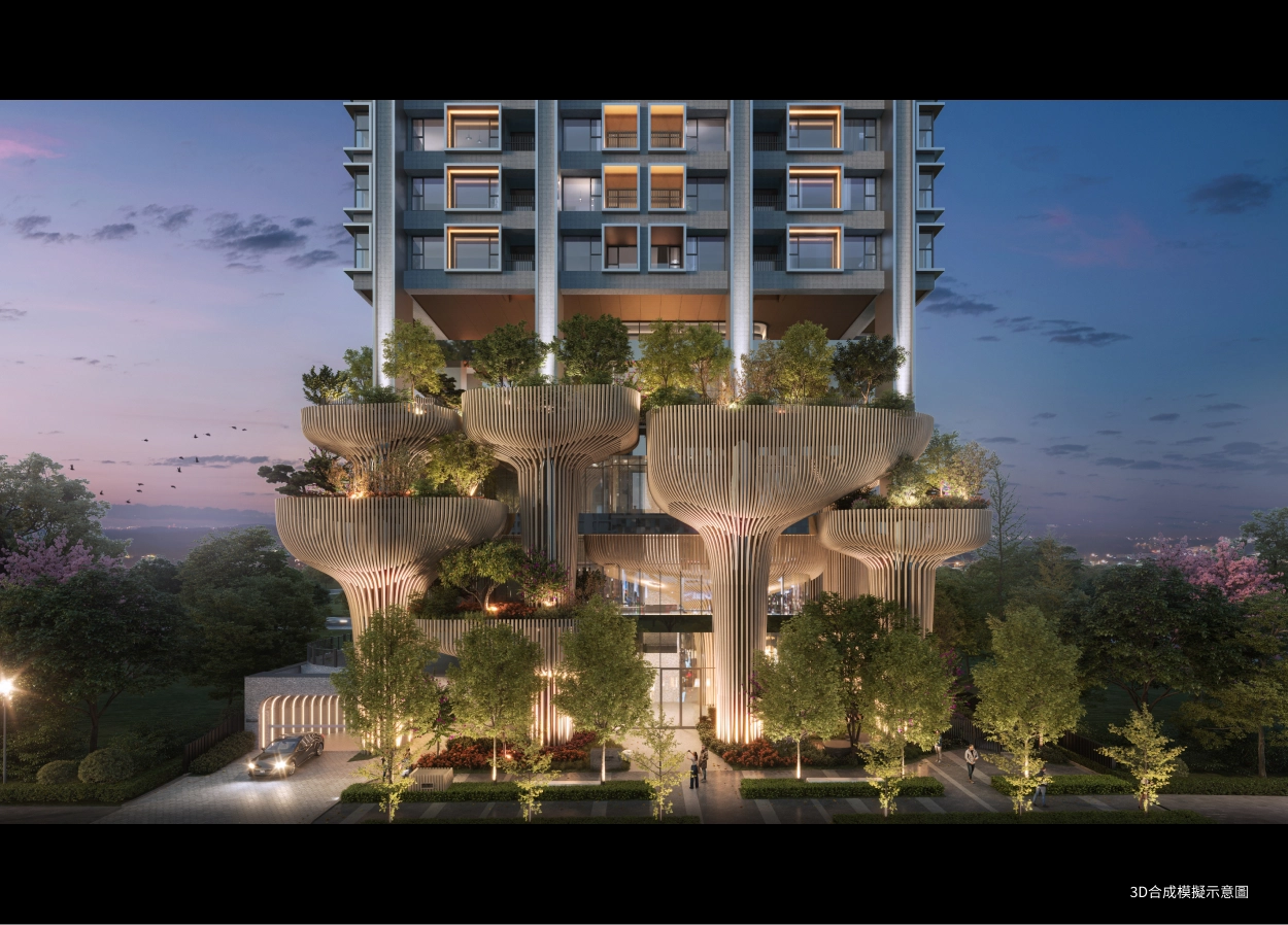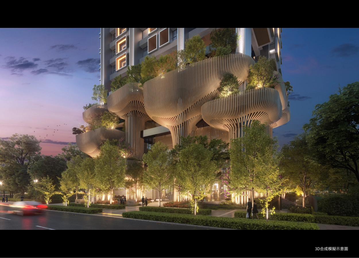 泰御SKY ISLAND,最讓我著迷的是「浮島建築」的設計語彙,13座花朵基座搭配流暢的曲線立面,讓整棟建築充滿生命力,設計從內而外,錯層的花朵創造不同視野的跳島露台。整體建築不單有天馬行空的創意想像,更與大彥結構工程團隊合作,將基座至4樓的柱子增建翼牆,在維持建築美觀下也能強化結構的耐震性能。